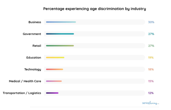 According to SeniorLiving.org, ageism in the technology industry occupies the 5th position, closely following the education industry: