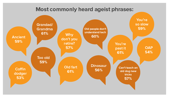 The most striking aspect of the survey is the age at which the respondents started to experience ageismé. The survey also highlights the most common ageist phrases: