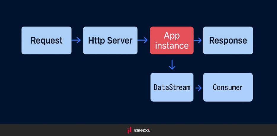 Let’s have a look at the situation inside App instance. Processing a request usually goes in many steps. Most of the steps work fast and do not require optimization. Several other steps do depend on some conditions.