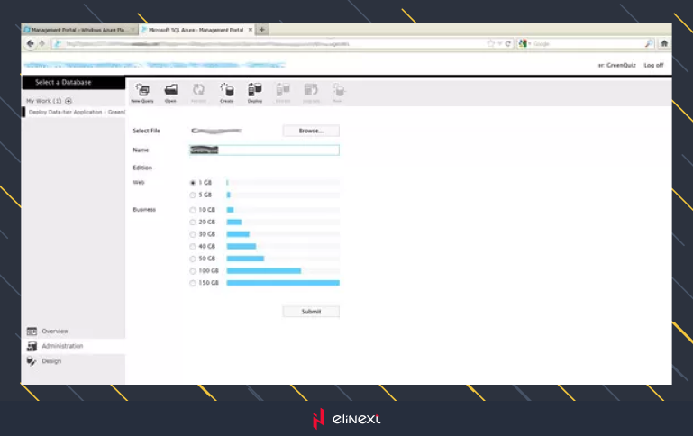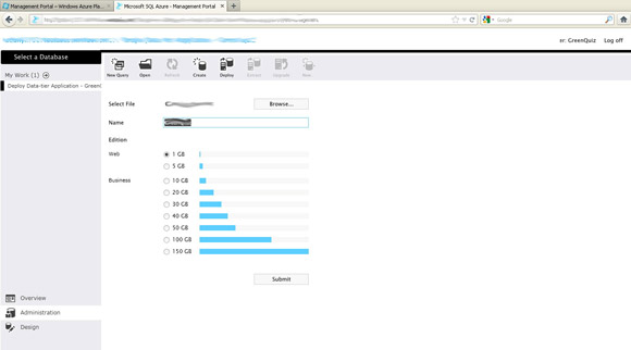 5. Click Submit and in a few moments you’ll get the database you need on Azure Server