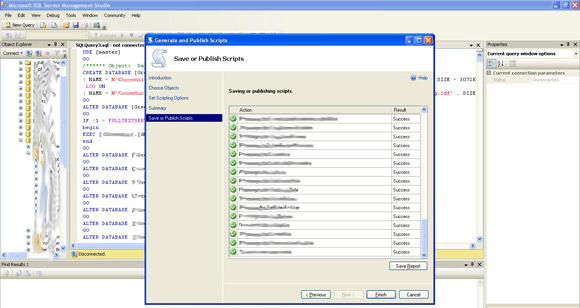 The next method of data movement that we’ve tried was database structure serializing to SQL initial script: