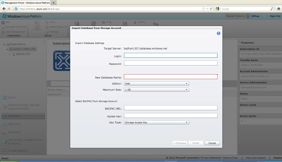 After creating the DAC there is a problem with uploading files to Azure Storage. Azure Storage doesn’t have an upload form for files. To do this we’ve used Windows Azure Platform Management Tool that could be downloaded from Codeplex: https://wapmmc.codeplex.com