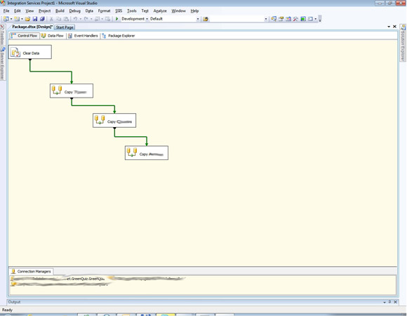 The first possibility of data migration we’ve found is SQL Server Integration Services (SSIS). Using a visual development tool based on Microsoft Visual Studio called the SQL Server Business Intelligence Development Studio (BIDS). It allows users to edit SSIS packages using a drag-and-drop user interface.