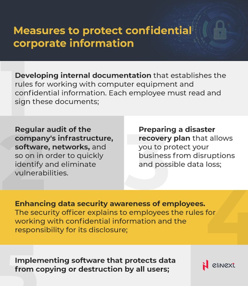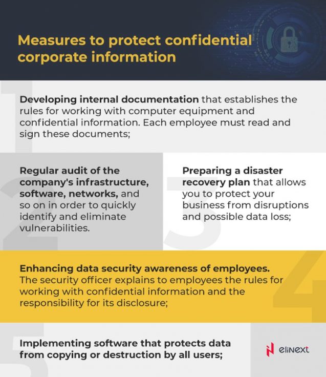 Every company (security officer or security department) must develop a set of organizational measures aimed at protecting confidential information. As a rule, it includes the following: