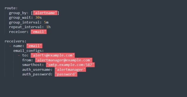 - `docker run -d -p 9093:9093 -v /path/to/alertmanager.yml:/etc/alertmanager/alertmanager.yml prom/alertmanager`