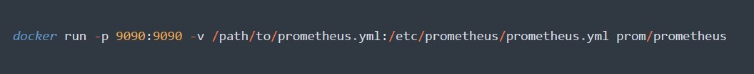 - `docker run -p 9090:9090 -v /path/to/prometheus.yml:/etc/prometheus/prometheus.yml prom/prometheus`