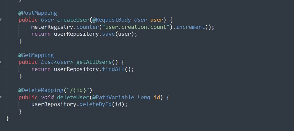 - Prometheus Query: `sum(increase(user_creation_count[1m]))`