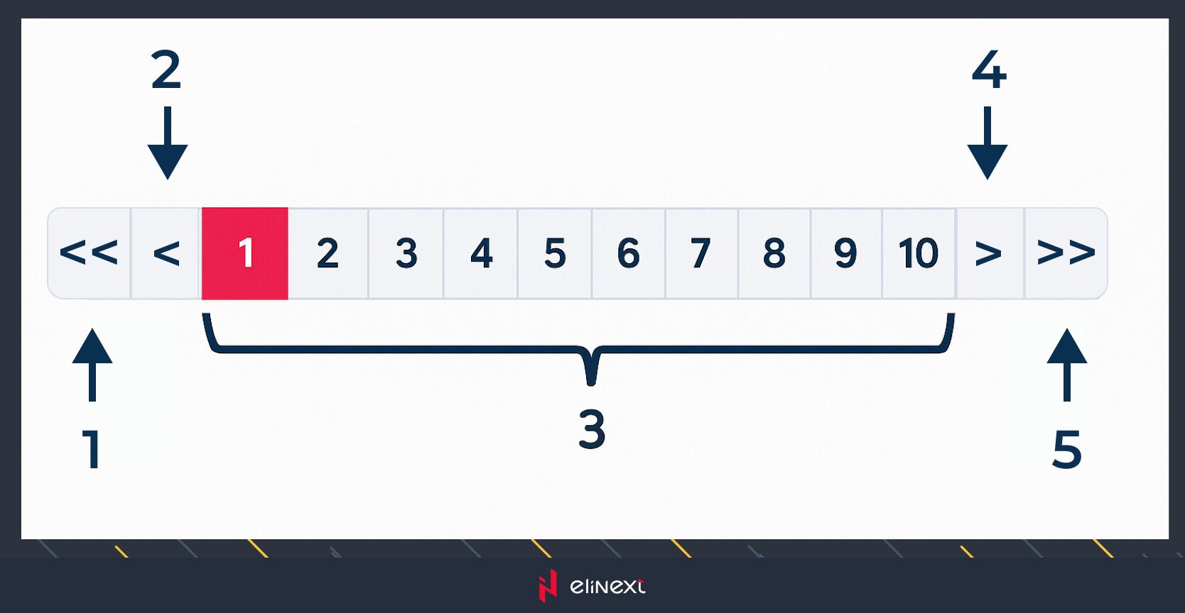 Pagination: is a UI element that presents a sequence of page numbers, allowing the user to select which page to load next. It facilitates user interaction and navigation through the content.