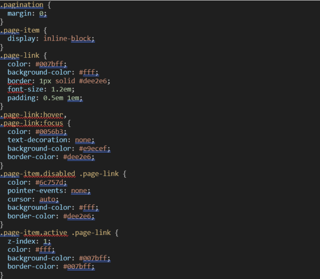 You can customize the styling of the pagination controls in the pagination.component.css file. Here is an example of what the styles might look like.