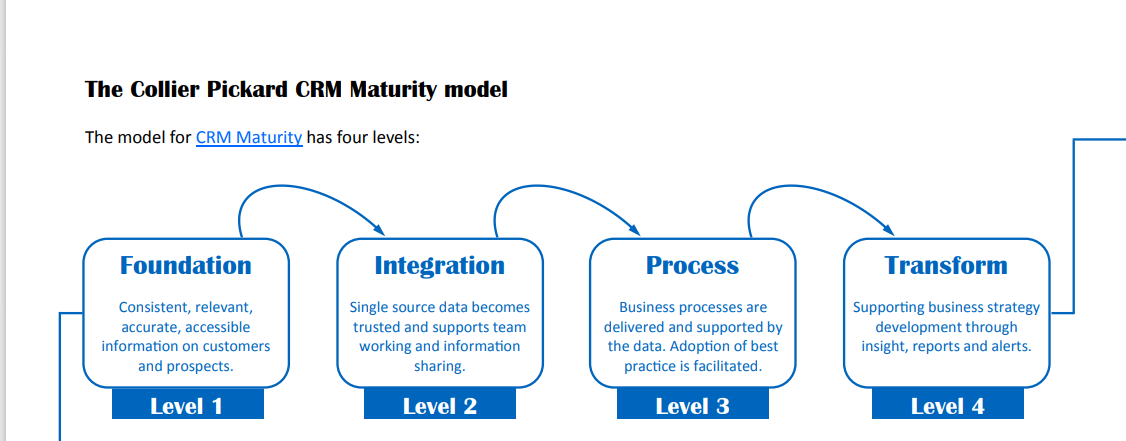 Collier Pickard proposes another CRM Maturity model that consists of 4 different levels: