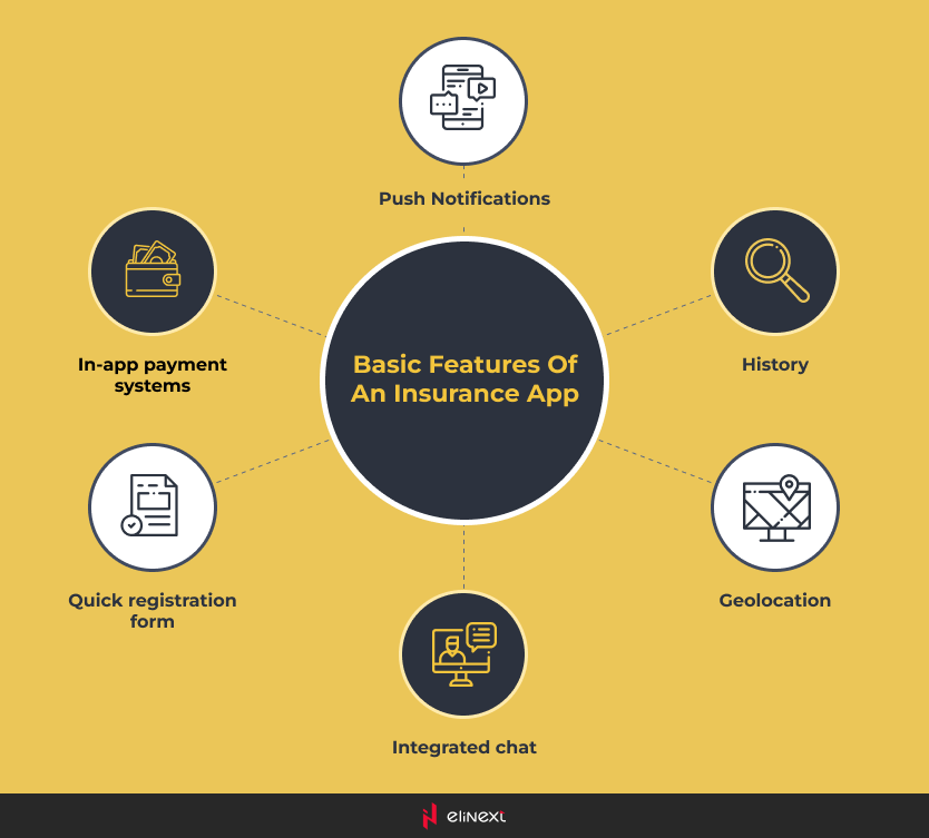 Insurance mobile app development MVPs include policy management, digital claims processing, document uploads, and live chat support. Users can view policy information, submit claims with photos, and get instant help. Push notifications remind them about renewals. These core features provide ease of use and quick time to market, allowing insurers to gather feedback and iterate.