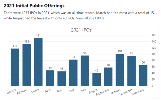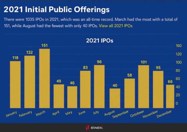 Under the COVID-19 scenario, the IPO market has broken one record after another. The U.S. market alone witnessed an all-time record with no less than 1035 IPOs in 2021. According to Stock Analysis, there were 150 IPOs in March alone: