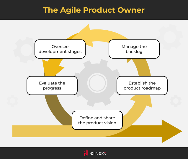 At the planning stage, the product owner collaborates with stakeholders to define the steps and action items for the next iteration. During the development stage the team may reach out to the product owner to clarify some items on the backlog or define areas for improvement. The product owner is also a part of retrospective sessions where they share their thoughts on the sprint, collect valuable feedback and bring a customer’s perspective.