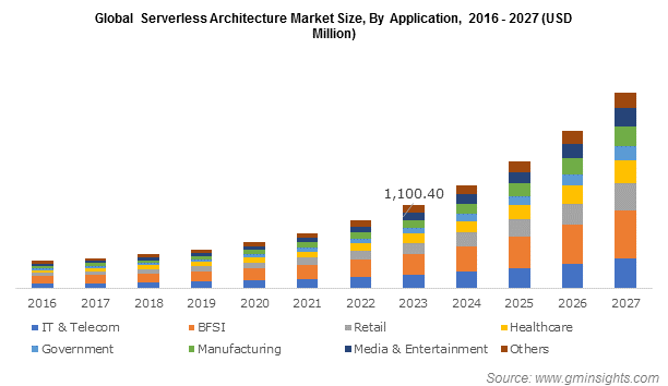 While enterprises from different verticals and industries leverage serverless computing, the largest growth is expected in the IT and telecom, healthcare, retail, and financial services sectors.