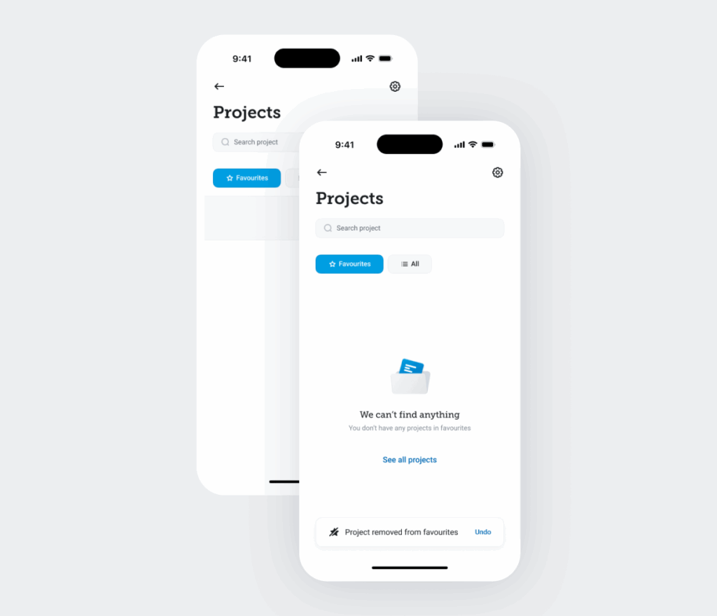 A key design principle was offline-first usability for the AI mobile app user experience. All core actions: browsing projects, managing defects and groups, adding photos, and updating favorites, work reliably without connectivity. Once a connection becomes available, the app synchronizes data automatically using a queued retry mechanism, ensuring data integrity without disrupting the user experience.