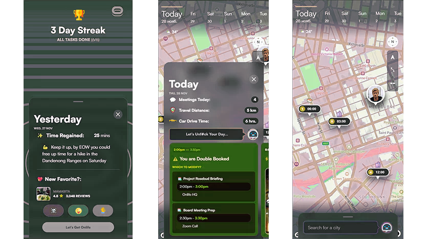 - Add a new event to the user schedule: The AI assistant checks the user schedule and finds the most relevant time slot for the new event based on the user’s location and gaps between other events. The new schedule is shown on the map.