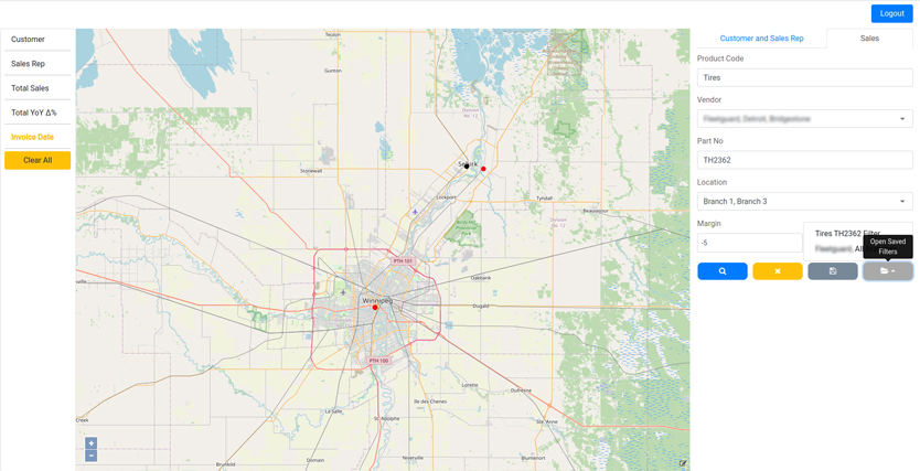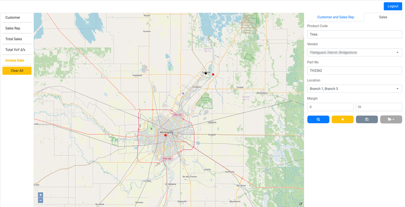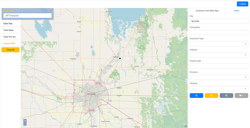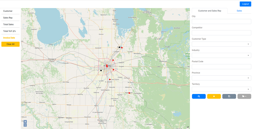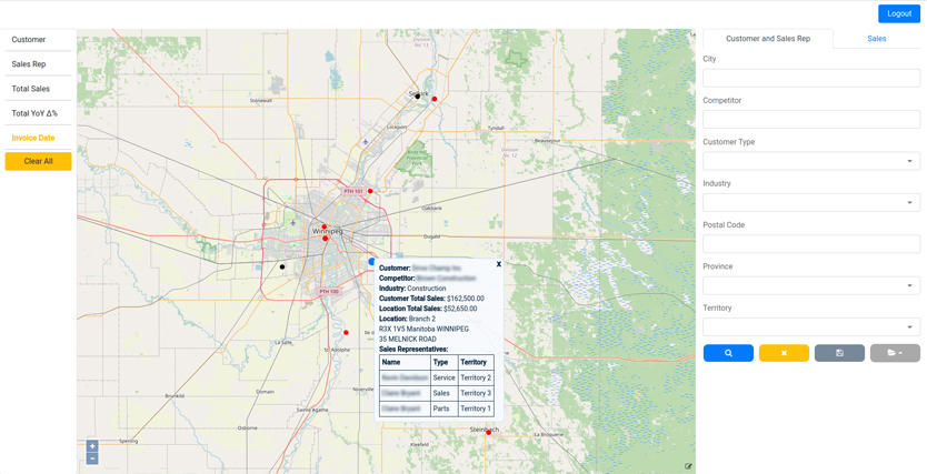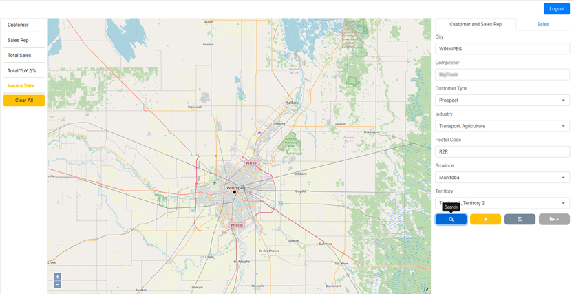 The company had been using a preset tool to visualize sales data on a map until they realized it wasn’t sufficient. In order to solve this problem, they conceived a custom application in the form of an interactive map. Sales reps could highlight their remit on that map and study businesses within it representing customers and sales leads.