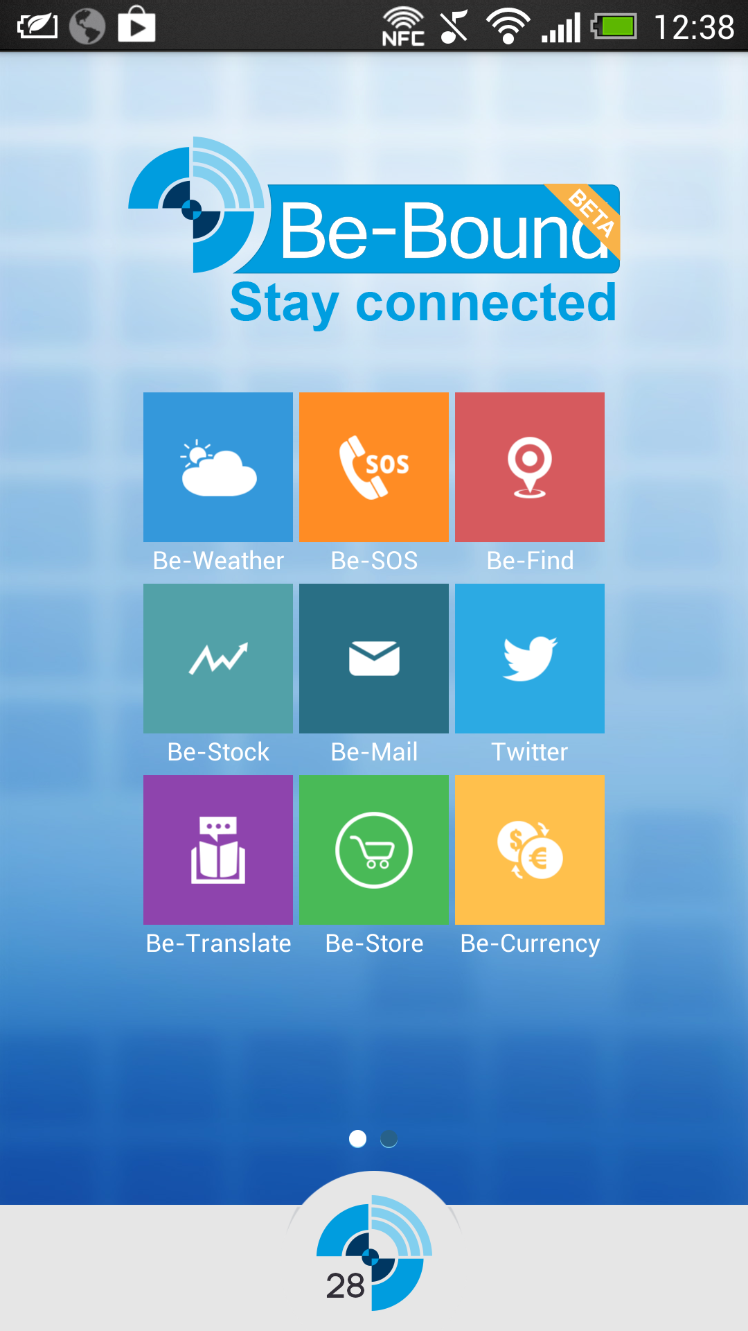 The Be-Bound application allows users to add and use Email, Facebook, and Twitter accounts; get news, weather; find local points of interest, and access other favorite apps: real-time stock exchange, currency converter, translator, flight tracker, GPS navigation - all built-in.