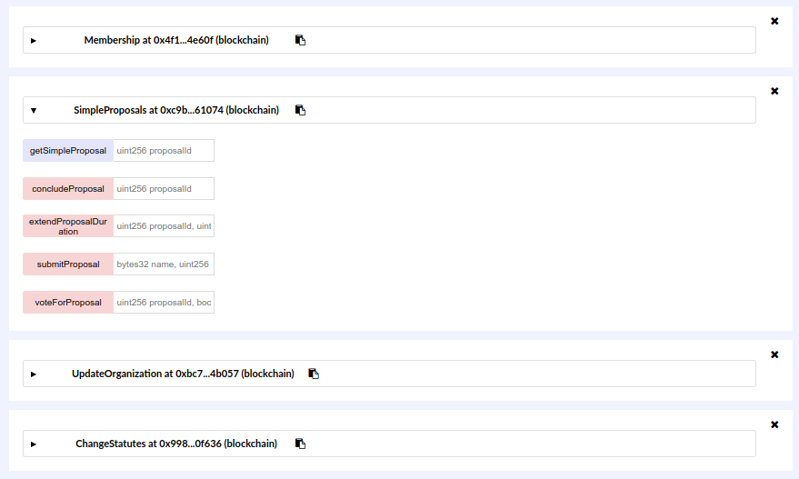 The product represents a blockchain-based system for so-called “distributed parliaments” or other institutions which consist of independent members who come to a decision based on transparent voting. Our developer implemented Smart contracts (SC) for each part of the product. It’s worth mentioning that SC supports different types of proposals: