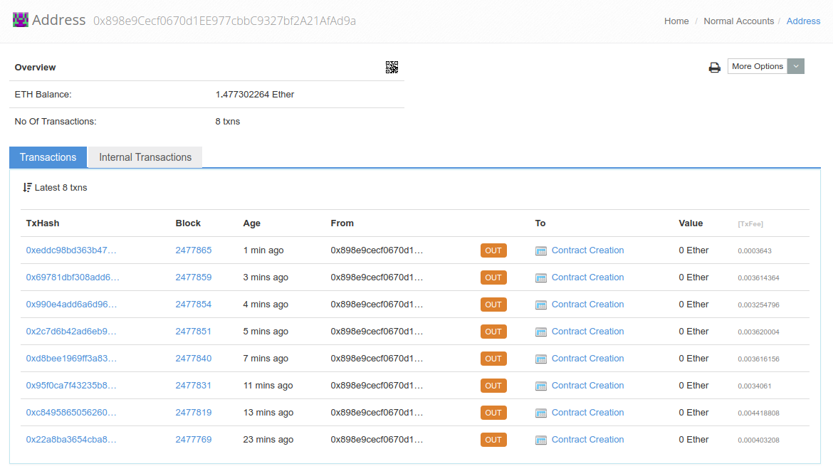 The contracts above are assembled in agreement with their addresses in a single Smart contract called DAA. Therefore, they form a distinct product. The functionality of the Smart contract went through Truffle tests to ensure Smart contracts’ security.