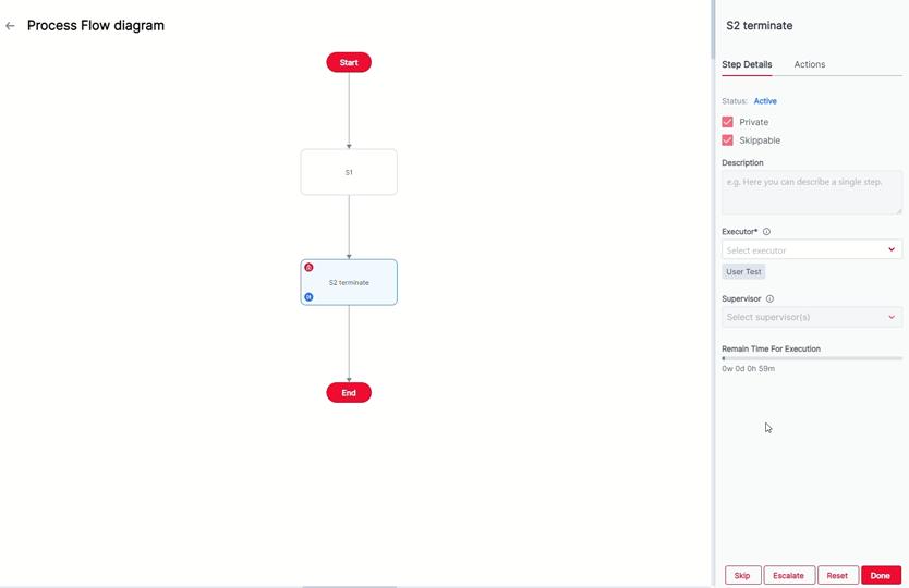 Processes include Steps from Templates, and Executors can manage these Steps throughout each Process. Here’s what they can do: