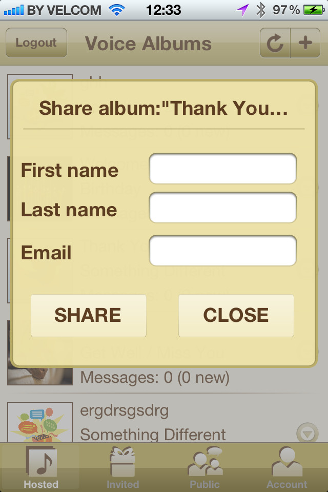 - Sharing “Voice Albums” with other users providing them with a possibility to add records to the albums.