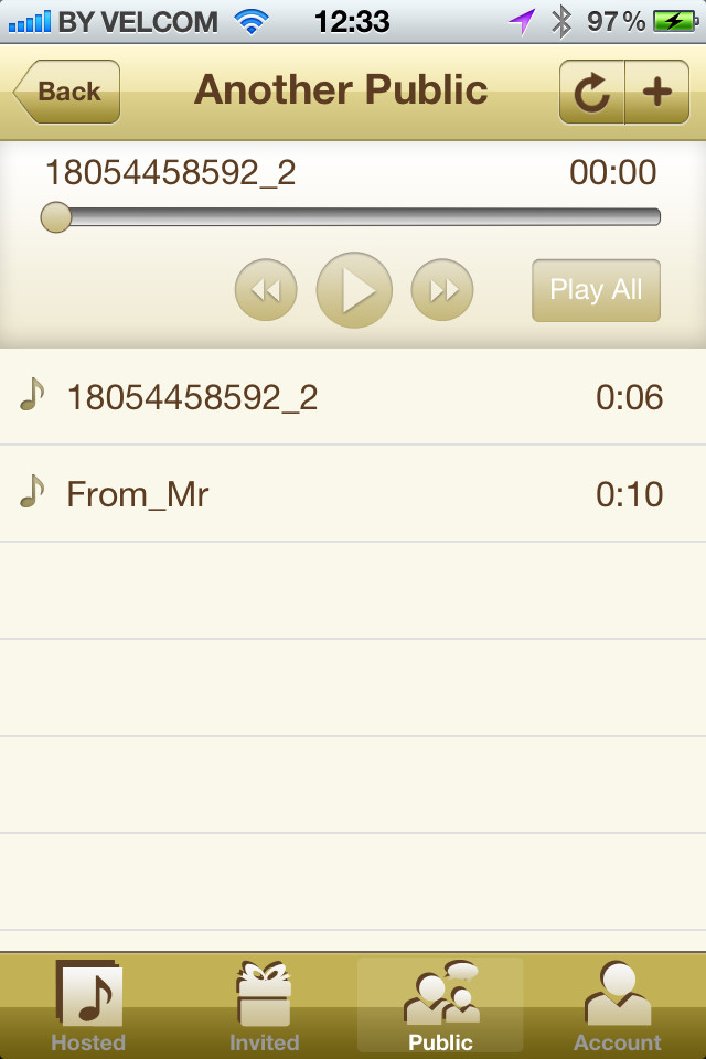 Developers have used their own media streamer to fully optimize its work for app logic and provide good quality and stable audio streaming from the server’s storage. The application was also divided into four main sections (user “Hosted”, “Invited”, “Public” albums, and user profile). In each section, the user can keep all the information up-to-date just by pressing the update button and the web service will immediately return fresh data.