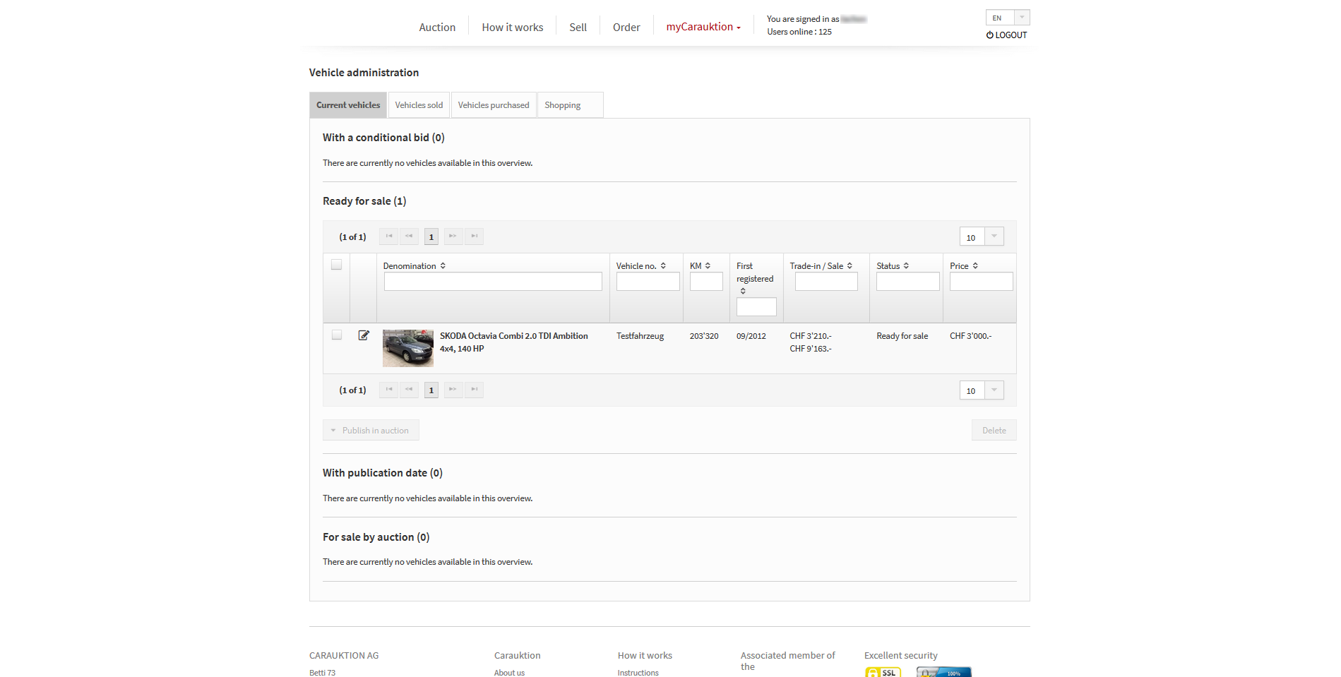 Each user goes through a registration process where they fill in the record providing exhaustive information about their lot – technical condition, mileage, the date of production – and add photos, set the minimum price for bid, and other technical data. Premium clients can place an order on the platform and their record is further processed by an administrator who completes the profile of the lot according to the results of technical expertise.