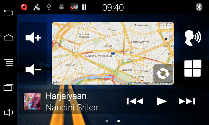 The main challenge for our specialist was to develop a responsive automotive application, that will allow the user to have fresh information about road traffic around his location or current date/time, give him control on embedded Media Player, like switching to Next/Previous tracks, changing the volume, and shortcuts to Voice Recognition system and Applications.