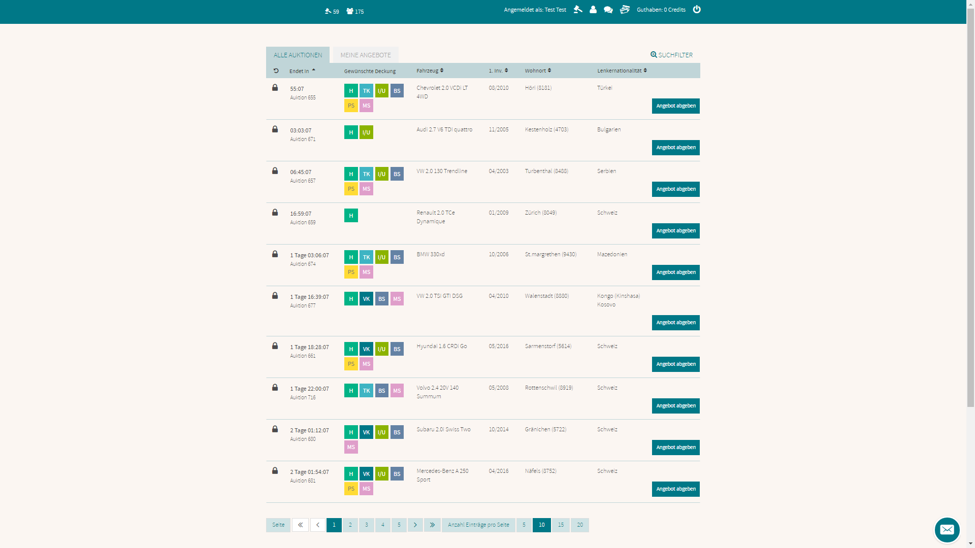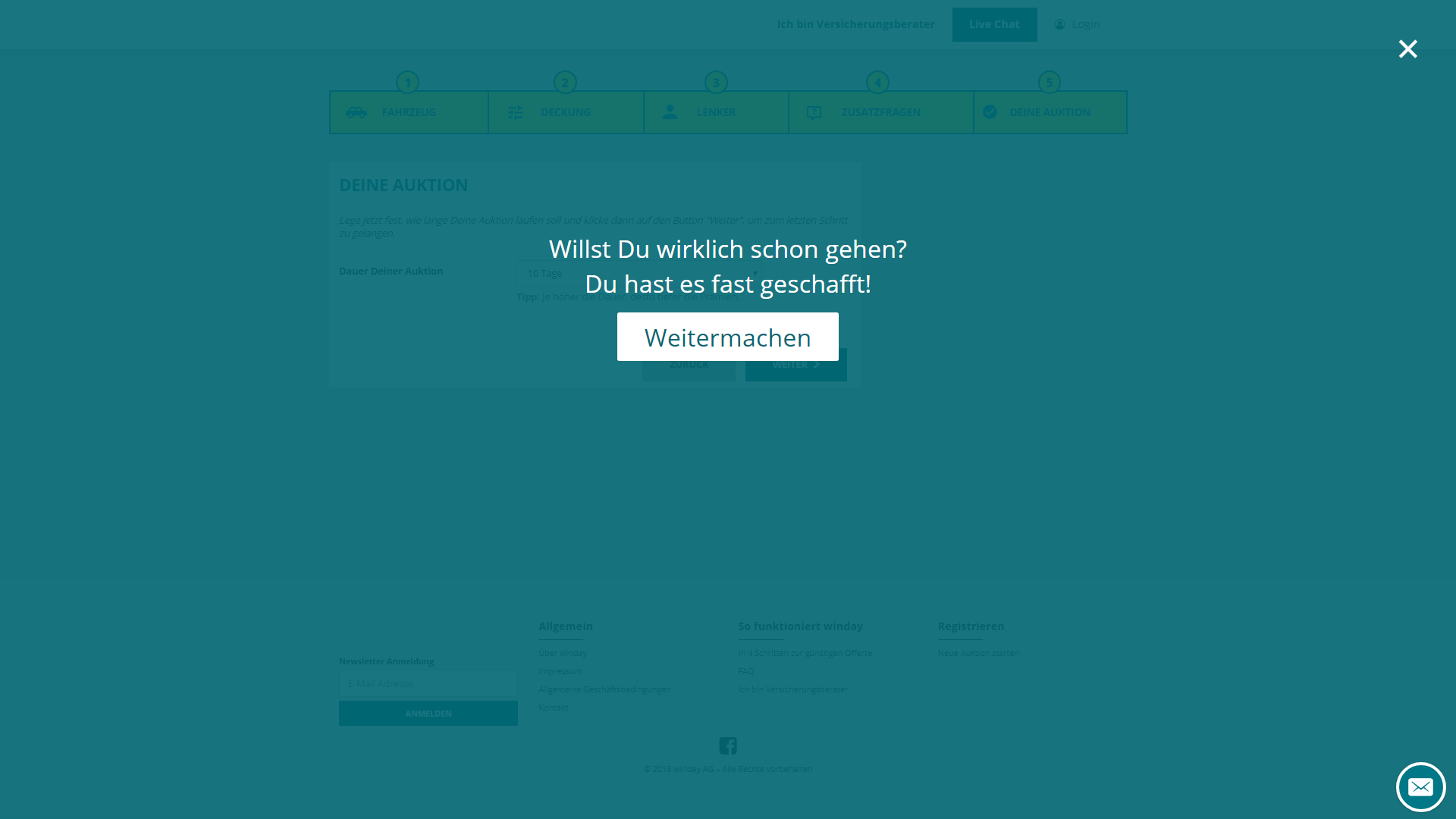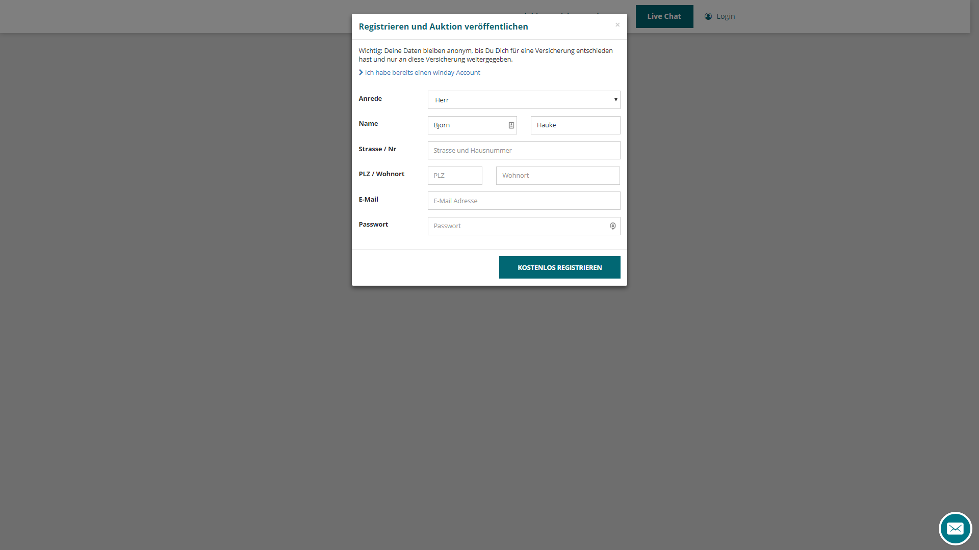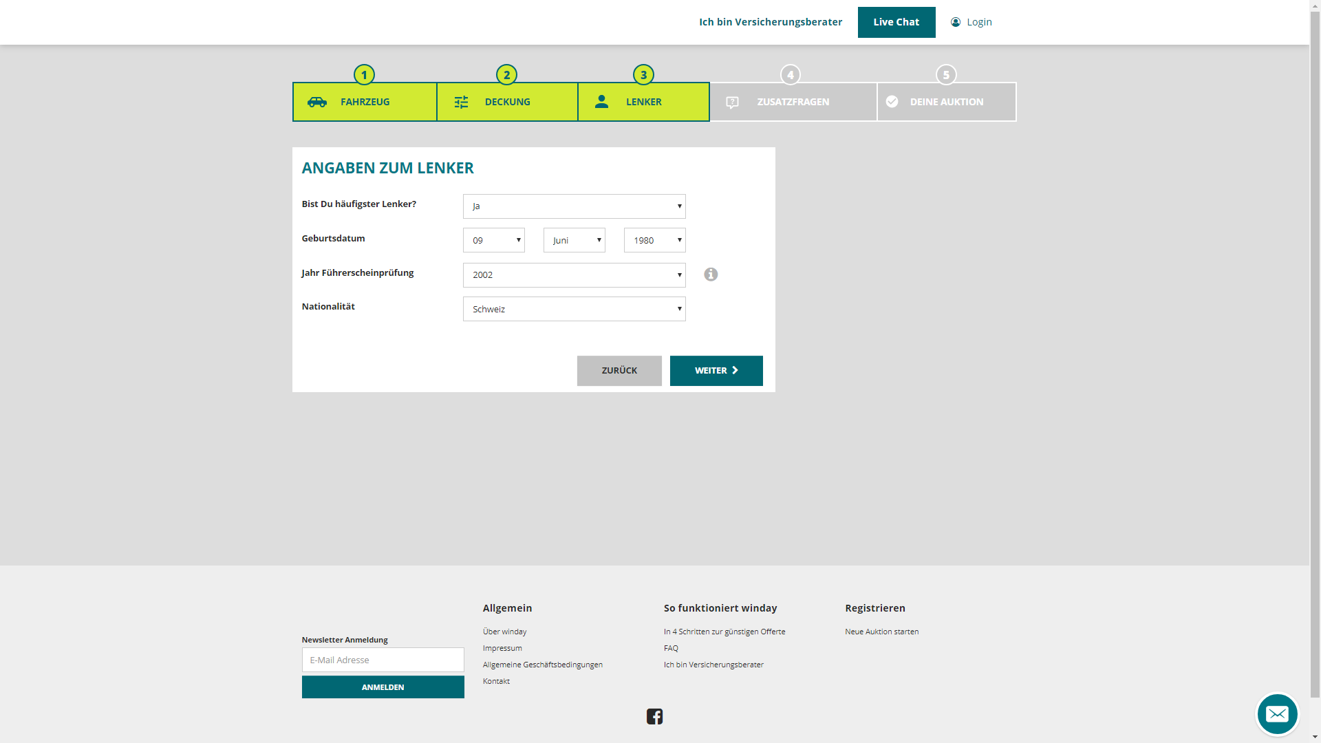 The customer collects his vehicle data, states the desired insurance coverage, and starts an auction. All vehicle and insurance data is already pre-recorded and available in a drop-down list, so the input doesn't take a lot of time.
