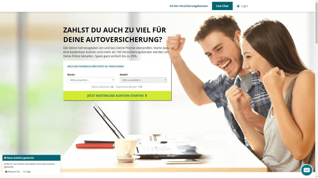 The registration for the customer is free, while the insurance agents pay a fee for participation in each auction.
