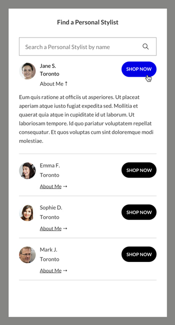 Here is how this has worked. A retailer asks our client to create a store associate’s profile. Our client’s designers put together mockups and a style guide from the original website’s design and send them to us.