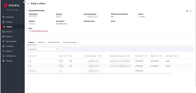 - To build a system that would unite all the contracts and payment information from every customer Elinext works with