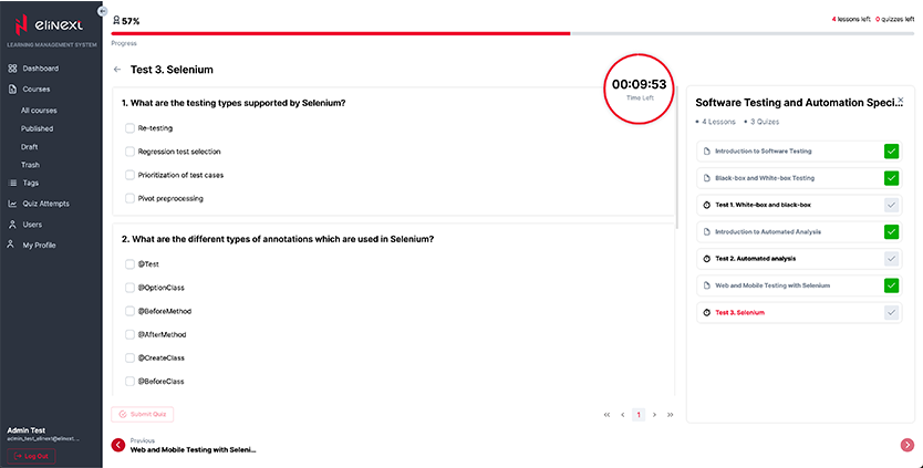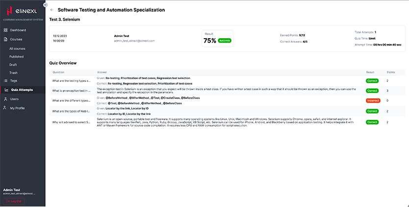 - Streamlining the course and testing creation process by providing an intuitive user interface, saving valuable time for administrators and course authors.