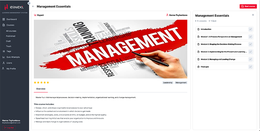 Learning Management System (Elinext LMS) is an efficient platform that streamlines the course creation, management, and study process, ensuring a seamless and user-friendly learning experience.