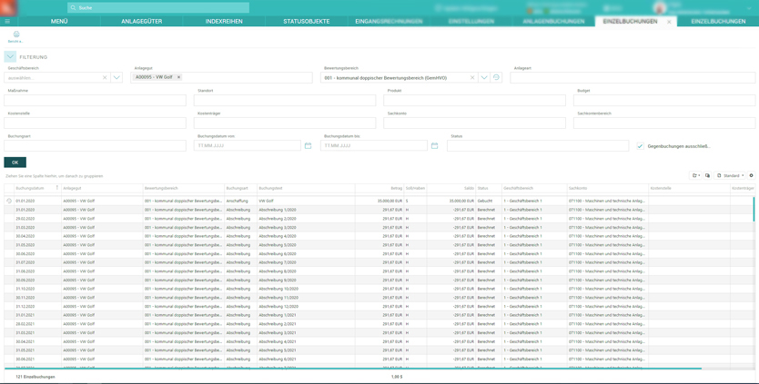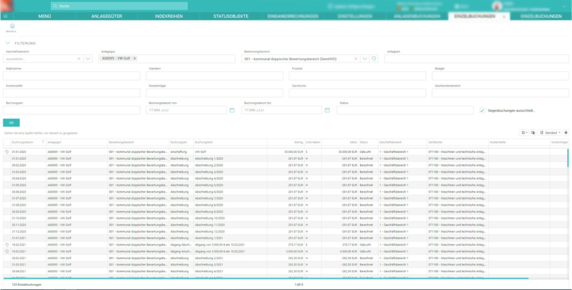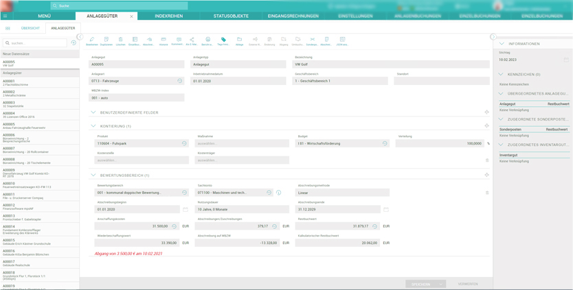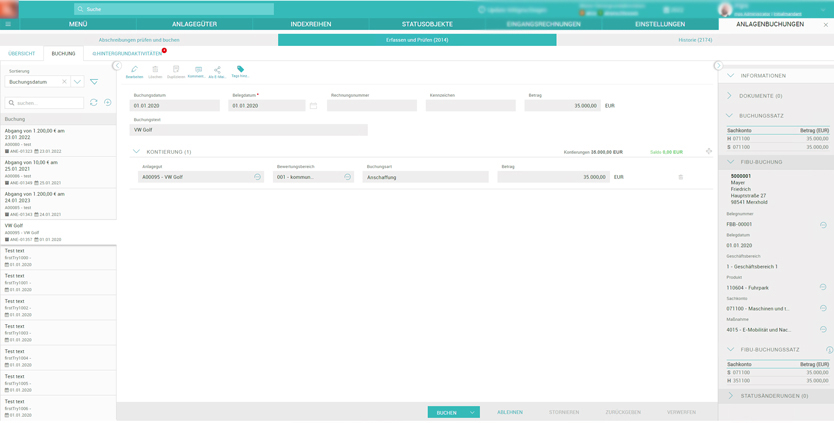 A submodule for asset booking with ability to fill in the payment details, such as invoice date, pricing details, and a payment type (incoming, outgoing, depreciation, and others).