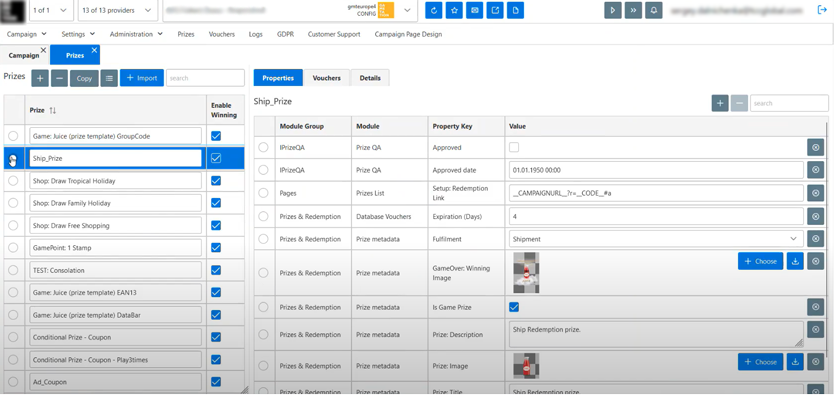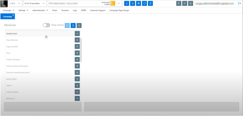 Management tool allows full campaign configuration by the marketing agency. The marketing manager can define the user flow for marketing campaigns and customize marketing campaigns depending on the required conditions. More than 20 games that reward the end-user with the prize were created from scratch. For every game, the solution makes it possible to choose its own language, geography, branding, settings, prize pool, discounts, targeting scenarios, ads, and so on.