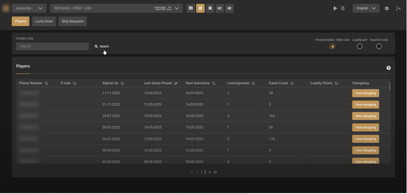 The end-user of our solution (shop, restaurant, etc.) can search all of the game players by phone numbers and see all of their activities. They can see which games they’ve played, when have they played them, which prize/discount was redeemed, and so on. It’s also possible to view and edit personal information. It’s done for customer support so that the customer could grant a prize, check the redemption status, and so on.