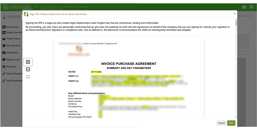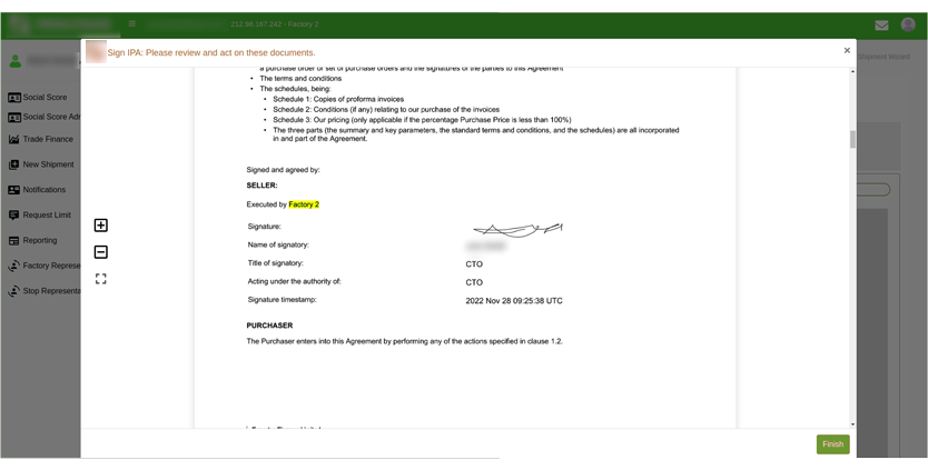 It starts when the supplier has agreed with the buyer that the payment should be channeled through our client’s system. After that, the supplier creates a respective deal in the system, enclosing the invoice, which will further be processed by our client.