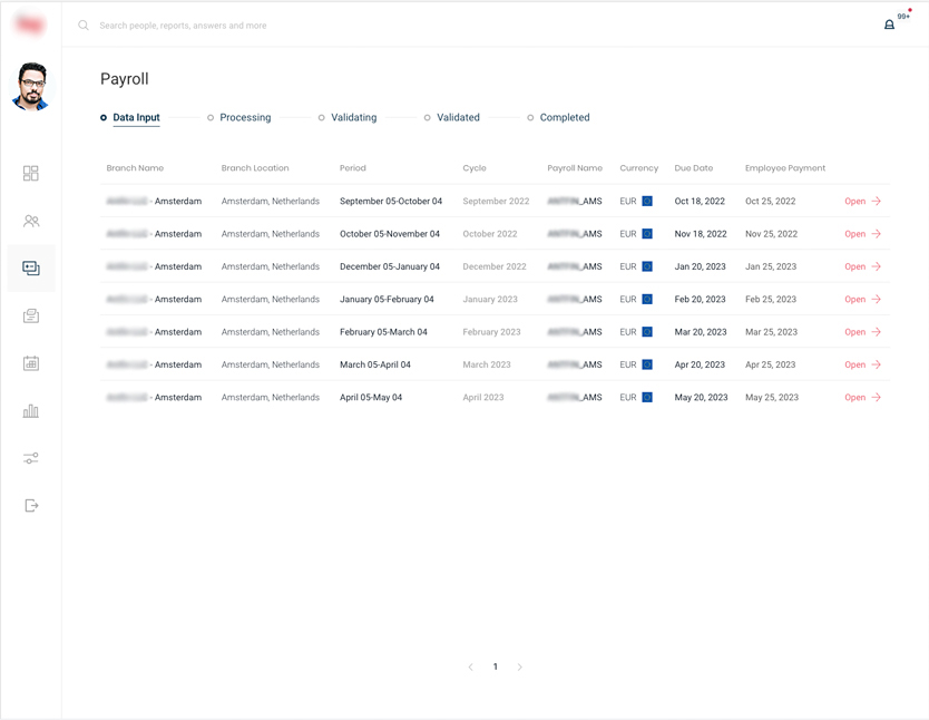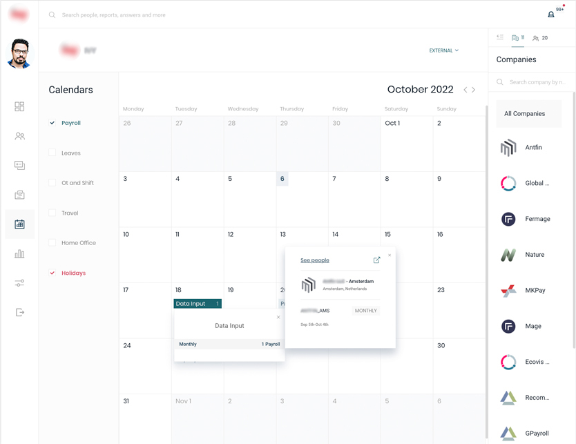Overall, the platform has six modules: Overview, Organization, Payroll, Requests, Calendar, and Reports. And it took us some doing to sync them with five user roles, each with unique permission levels. Those included the super admin, employer, accounting service provider, referent, and employee.