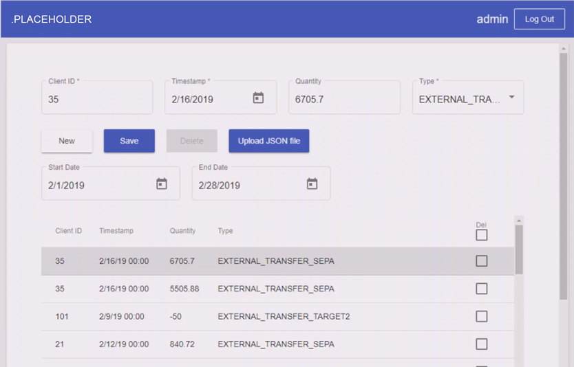 The client’s system records all transactions as events. Has a customer received funds? An event is recorded. Have they sent funds? Another event is recorded. For each event, the system charges the customer a fee. All events have four parameters: ID, timestamp, quantity, and type.