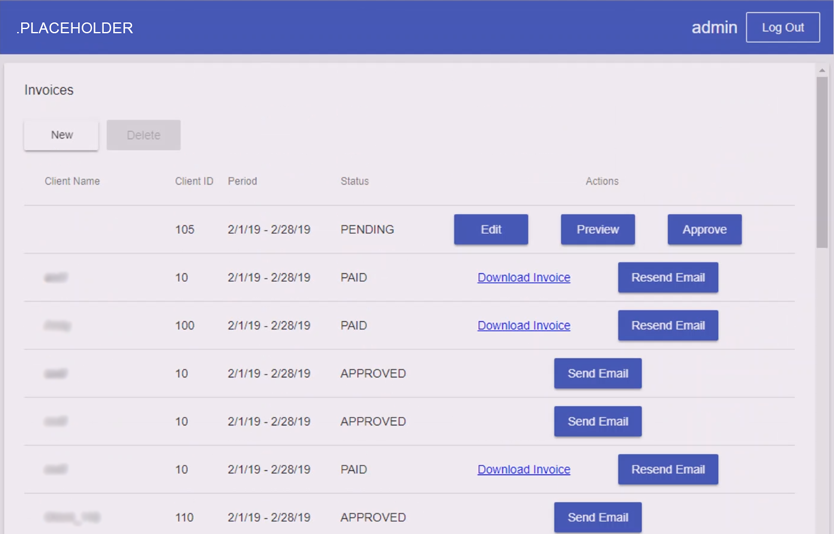Once an admin has issued an invoice, the customer can approve it and the invoice status will change to “Approved”. The admin will then be able to give the invoice final approval and email it to the customer. After that, the system will automatically extract funds from the customer’s account.