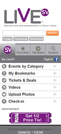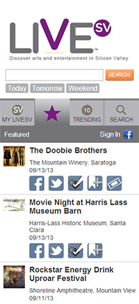 According to the provided request, Elinext specialists had to create a mobile-optimized version of an existing www.livesv.com website – the portal that provides full coverage of information about events, entertainment, and cultural activities in Silicon Valley. At the moment LiveSV provides useful information about the arts, culture, and entertainment to thousands of users every day.
