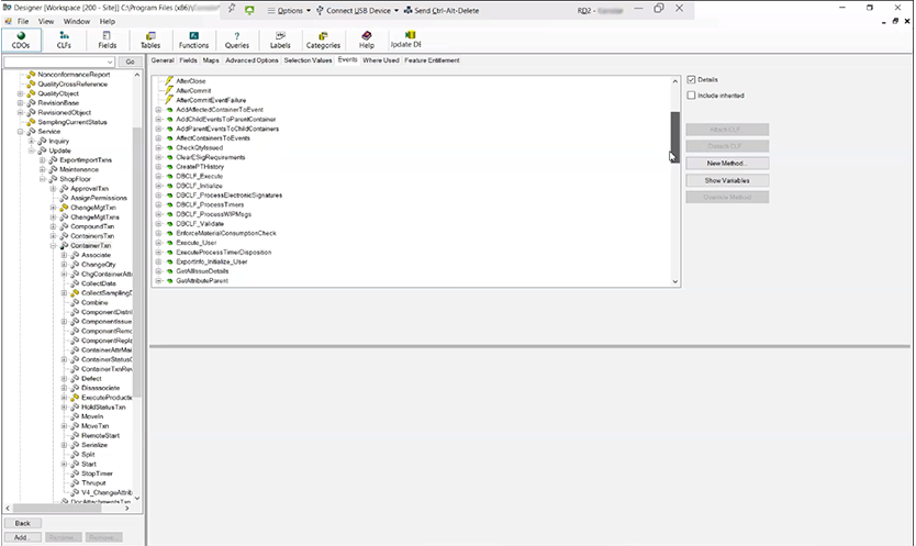 The MES operates on a business logic developed decades ago which, surprisingly, remains relevant today. The logic is structured as a set of functions executed on a C++ server.