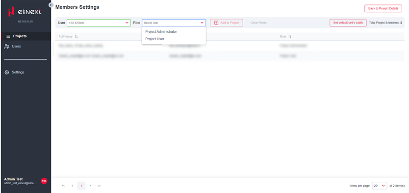 Here one could manage a member’s list, including viewing all the members in a grid, filtering info in the grid of columns, and adjusting the width of these columns. Admins can add and delete members, as well as edit their roles. At the same time, the administrator does not need to create an account; he just needs to select the person in the dropdown and assign him a project role.