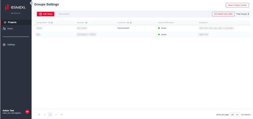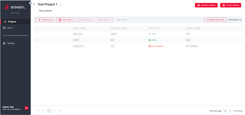 Each project may have several services that are to be monitored. This feature makes it easy to observe services’ general info, status, and groups. It helps with controlling the receiving of notifications and adds a feature to filter a wide range of services by group.