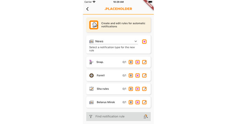 We also created a screen called Rules, where the user can set alerts for events. This could be a price change for a particular stock, updates on a story, new product discounts, and more.
