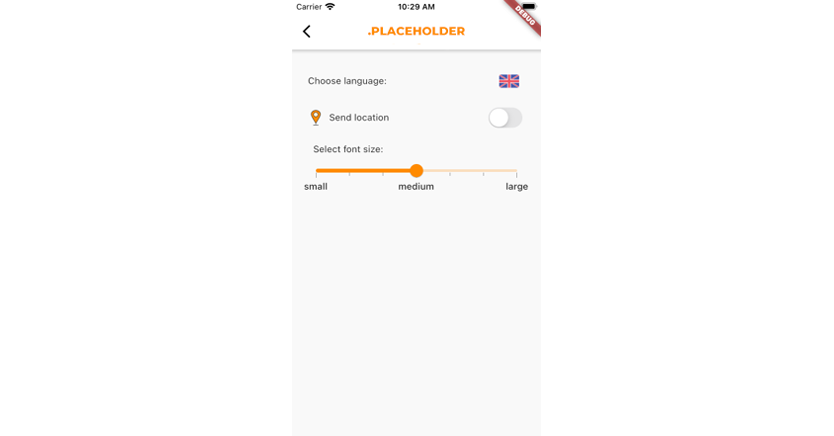 When we were first approached by the client, the app had its settings chaotically spread across different places. We collected those settings on one screen. The user can now use a single screen to change the language and font size, and allow the app to use their location for more relevant suggestions.