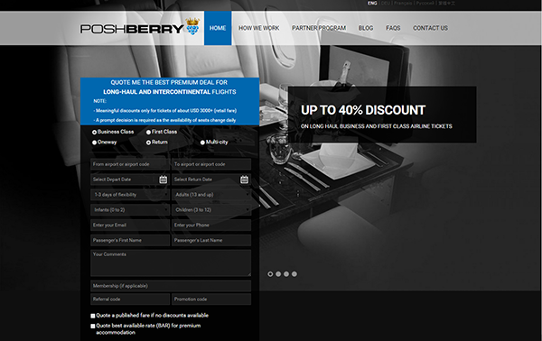 The initial requirement was to improve and refine the existing company website in terms of security, usability, payment options, and search engine optimization. Since Poshberry company is working in the luxury travel, area well-optimized customer service is crucial. The aim was to automate the whole process of working with customers including quote request handling, credit card payments, customer support, and integration with an accounting system.
