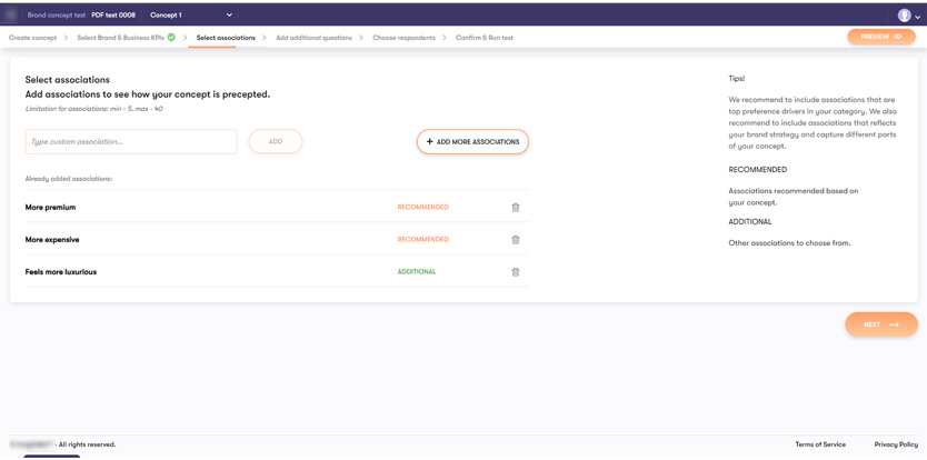 Step 3 — add associations to see how the concept is perceived.